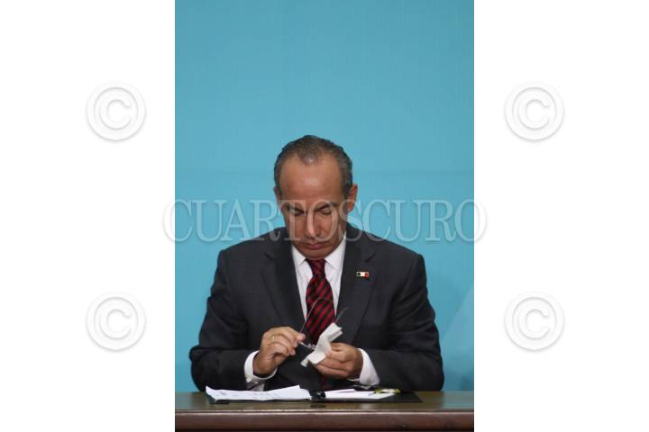 MÉXICO, D.F., 26AGOSTO2010.- El presidente Felipe Calderón durante el evento Debilitando el Poder Económico de la Delincuencia Organizada que se realizo en el salón Adolfo López Mateos de la residencia oficial de Los Pinos. FOTO: RODOLFO ANGULO/CUARTOSCURO.COM