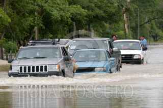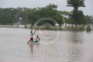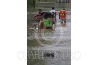 VILLAHERMOSA, TABASCO, 26AGOSTO2010.- Varios vehículos transitan sobre las aguas desbordadas del río la Sierra, intentando llevar a sus familias a una zona fuera de peligro. FOTO: MARCO POLO GUZMÁN HERNÁNDEZ/CUARTOSCURO.COM