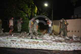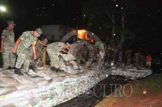 VILLAHERMOSA, TABASCO, 27AGOSTO2010.- Elementos del Ejercito Mexicano adscritos en la 30 Zona Militar realizan desde anoche trabajos de amurallar con costales con arenas en la colonia Indeco, donde el río Carrizal empieza a desbordar. FOTO: MARCO POLO GUZMÁN HERNÁNDEZ/CUARTOSCURO.COM