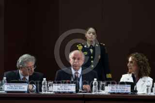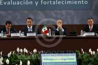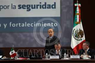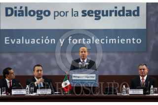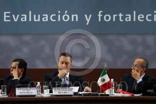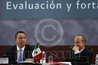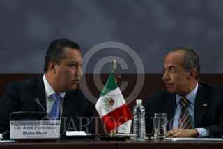 MÉXICO, D.F., 27AGOSTO2010.- Fidel Herrera Beltrán, gobernador de Veracruz; José Francisco Blake, secretario de Gobernación y el presidente Felipe Calderón durante el evento de Diálogo por la Seguridad, Hacia una Política de Estado, Conclusiones que se realizo en el casino del Campo Militar Marte. FOTO: RODOLFO ANGULO/CUARTOSCURO.COM