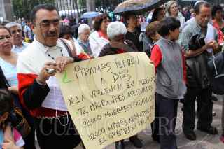MÉXICO, D.F., 29AGOSTO2010.- Un grupo de creyentes católicos realizaron un rosario viviente en defensa de la familia mexicana y en solidaridad con el Episcopado mexicano al termino de la homilía en el atrio de la Catedral Metropolitana. FOTO: RODOLFO ANGULO/CUARTOSCURO.COM