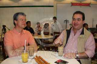 VERACRUZ, VERACRUZ. 29AGOSTO 2010.- Esta mañana se dieron cita para desayunar en conocido café de esta ciudad, el gobernador electo, Javier Duarte de Ochoa, y el ex panista, Gerardo Buganza Salmerón, quien fuera precandidato a la gubernatura por el blanquiazul. Encuentro donde el priista dejo entrever que, Buganza Salmerón, podría formar parte de su equipo de trabajo en el gobierno estatal. FOTO: JOSÉ CANDELARIO/CUARTOSCURO.COM