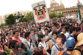 GUADALAJARA, JALISCO, 30AGOSTO2010.- Estudiantes, maestros y algunos padres de familia de las preparatorias 2 y 3 de la Universidad de Guadalajara, arribaron esta mañana al Palacio de Gobierno solicitando a Emilio González Márquez mayor presupuesto. FOTO JOSE MARIA MARTINEZ/CUARTOSCURO.COM