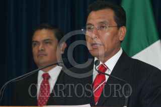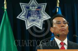MÉXICO, D.F., 30AGOSTO2010.- Marco Tulio López Escamilla, coordinador de Asuntos Internos de la Secretaría de Seguridad Pública (SSP), al termino de la conferencia de prensa donde se anunció la baja a más de 4 mil elementos de la corporación, incluidos los efectivos que acusaron de malos tratos y abusos de cuatro mandos en Ciudad Juárez, el pasado 7 de agosto, de igual manera de 3 mil 200 elementos en una primera etapa, mientras que se encuentran en proceso disciplinario otros mil 20 efectivos y 465 más están sujetos a proceso judicial por la presunta comisión de algún ilícito. FOTO: MISAEL VALTIERRA/CUARTOSCURO.COM