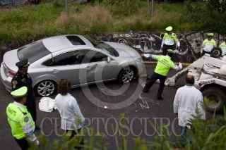 MÉXICO, D.F., 30AGOSTO2010.- Después de una persecución en la ciudad, un presunto delincuente, perdió la vida al enfrentarse a elementos de la policía Federal que viajaban en una camioneta sobre la Avenida Zacatepetl casi esquina con Periférico Sur, en la colonia Insurgentes Cuicuilco. En el interior del vehículo, se encontraron al menos 20 celulares y una granada por lo que elementos de la policía, resguardaron la zona para realizar las investigaciones correspondientes. FOTO: LUIS CARBAYO/CUARTOSCURO.COM