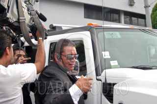 MÉXICO, D.F., 30AGOSTO2010.- La camioneta Hummer de Celia Lora acompañada por su hija del mismo nombre (acusada de homicidio imprudencial), es custodiada por su equipo de seguridad a la salida del programa de Laura Bozzo en las instalaciones de TV Azteca. FOTO: MISAEL VALTIERRA/CUARTOSCURO.COM