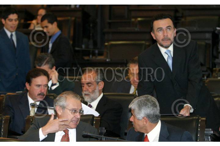 México, D.F. MARZO 2004.- Carlos Medina Placencia (der) a su llegada a la Cámara de senadores no saluda a sus colegas Diego Fernández de Cevallos (centro) y Emilio Gamboa Patrón (Izq). FOTO: Sandra Perdomo/CUARTOSCURO.COM