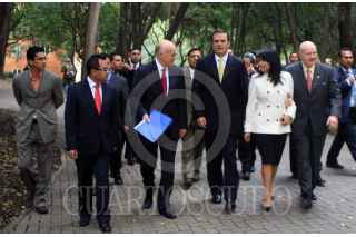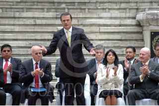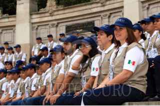 MÉXICO, D.F., 31AGOSTO2010.- Marcelo Ebrad Casaubon, jefe de gobierno capitalino, encabezo esta mañana, la protesta a 300 nuevos verificadores, integrantes del Instituto de Verificación Administrativa del Distrito Federal durante un acto solemne en la Tribuna Monumental en Honor al Escuadrón 201, Chapultepec. FOTO: CUARTOSCURO.COM