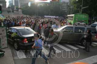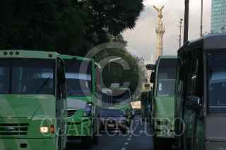 MÉXICO, D.F., 03SEPTIEMBRE2010.- Cientos de Transportistas se manifestaron del Ángel de la Independencia en Paseo de la Reforma al Zócalo Capitalino. FOTO: ENRIQUE ORDÓÑEZ/CUARTOSCURO.COM