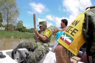 VILLAHERMOSA, TABASCO, 03SEPTIEMBRE2010.- Elementos del Ejercito Mexicano de la 30 Zona Militar aplicación del Plan D-III-E realizando entregas de despensas en zonas inundadas por el desborde del rio Grijalva. Revelan las autoridades castrense que han entregado en promedio dos mil 300 distribución de despensas de manera simultanea en los municipios de Cunduacan, Nacajuca, Macuspana, Centla y Centro; en la imagen entregan el apoyo en el sector los Acosta. FOTO: MARCO POLO GUZMAN HERNANDEZ/CUARTOSCURO.COM