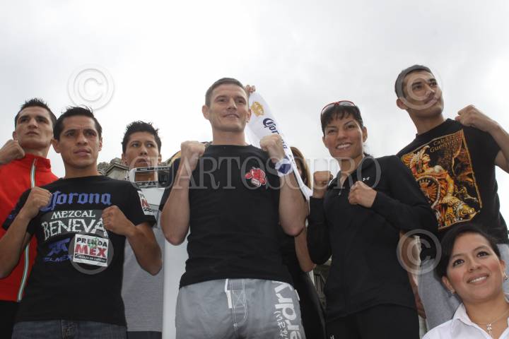 MÉXICO, D.F., 04SEPTIEMBRE2010.- Los boxeadores Ana María "La Guerrera" Torres, Willy Lemon, Ramón "Niño de Oro" Ayala, Daniel "Tremendo" Estrada y Edgar Sosa, participaron en la ceremonia de pesaje de la Gala Boxística de la Ciudad de México “ Los Campeones del Bicentenario" que se realizó en el Palacio de Bellas Artes. FOTO: MOISÉS PABLO//CUARTOSCURO.COM