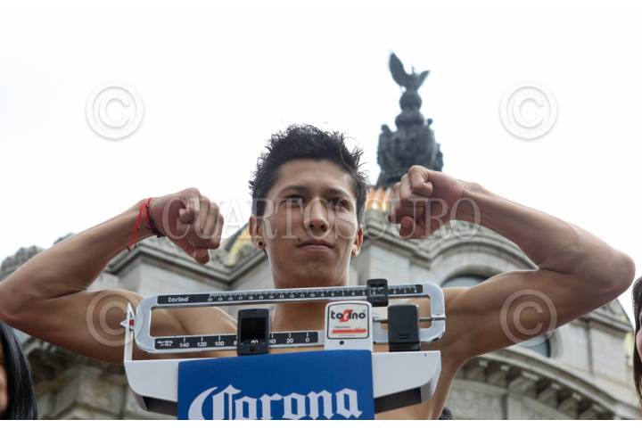 MÉXICO, D.F., 04SEPTIEMBRE2010.- Los boxeadores Ana María "La Guerrera" Torres, Willy Lemon, Ramón "Niño de Oro" Ayala, Daniel "Tremendo" Estrada y Edgar Sosa, participaron en la ceremonia de pesaje de la Gala Boxística de la Ciudad de México “ Los Campeones del Bicentenario" que se realizó en el Palacio de Bellas Artes. FOTO: MOISÉS PABLO//CUARTOSCURO.COM