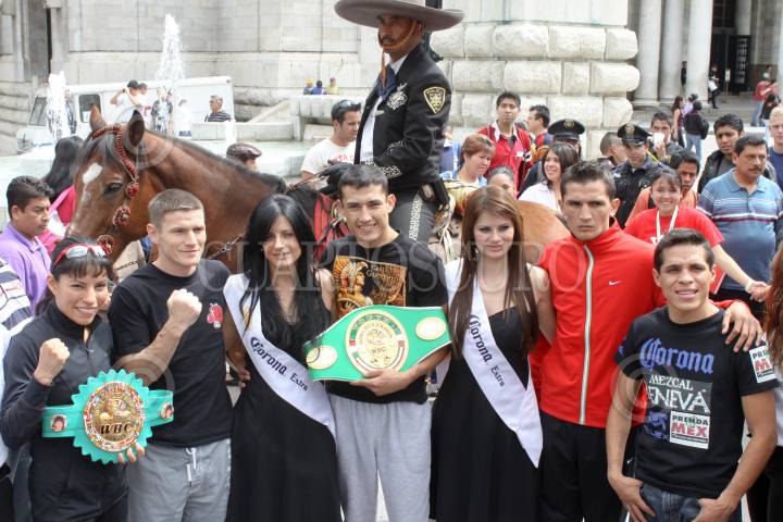 MÉXICO, D.F., 04SEPTIEMBRE2010.- Los boxeadores Ana María "La Guerrera" Torres, Willy Lemon, Ramón "Niño de Oro" Ayala, Daniel "Tremendo" Estrada y Edgar Sosa, participaron en la ceremonia de pesaje de la Gala Boxística de la Ciudad de México “ Los Campeones del Bicentenario" que se realizó en el Palacio de Bellas Artes. FOTO: MOISÉS PABLO//CUARTOSCURO.COM