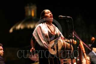 México, D. F. 19 Marzo 2004.- Lila Downs y la Lincon Center Jazz Orchestra con Wynton Marsalis ofrecieron un concierto en el zócalo de la ciudad de México. FOTO: Nelly Salas/CUARTOSCURO.COM