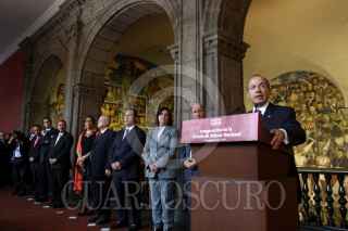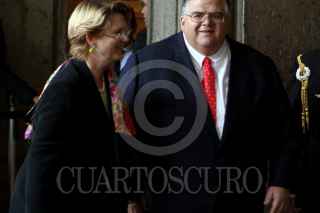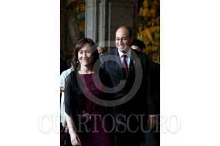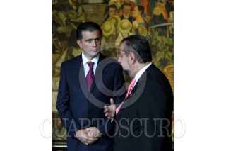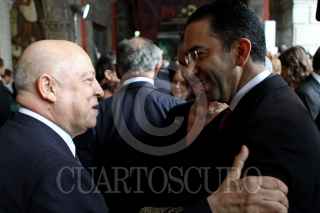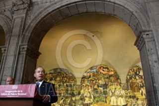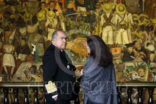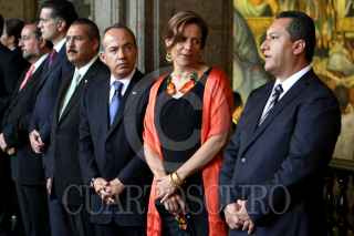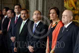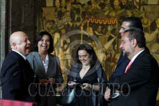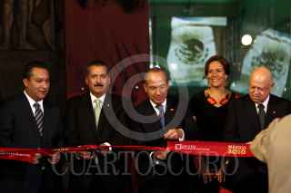 MÉXICO D.F., 05SEPTIEMBRE2010.- Guillermo Ortiz Mayagoitia, ministro presidente de la Suprema Corte de Justicia de la Nación; Consuelo Saizar, presidenta de CONACULTA; Alejandra Sota, coordinadora de Comunicación Social de Presidencia de la República; Alonso Lujambio, secretario de Educación Pública y José Manuel Villalpando, coordinador de los festejos del Centenario y Bicentenario conversan momentos antes de iniciar el evento inaugural de la exposición “México 200 años. La Patria en Construcción” en el Palacio Nacional. FOTO: RODOLFO ANGULO/CUARTOSCURO.COM