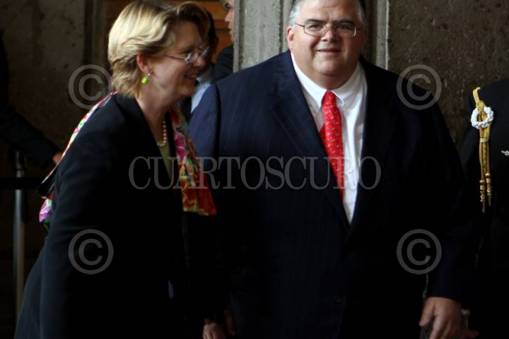 MÉXICO D.F., 05SEPTIEMBRE2010.- Guillermo Ortiz Mayagoitia, ministro presidente de la Suprema Corte de Justicia de la Nación; Consuelo Saizar, presidenta de CONACULTA; Alejandra Sota, coordinadora de Comunicación Social de Presidencia de la República; Alonso Lujambio, secretario de Educación Pública y José Manuel Villalpando, coordinador de los festejos del Centenario y Bicentenario conversan momentos antes de iniciar el evento inaugural de la exposición “México 200 años. La Patria en Construcción” en el Palacio Nacional. FOTO: RODOLFO ANGULO/CUARTOSCURO.COM