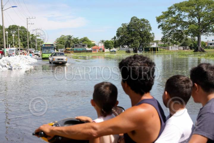 VILLAHERMOSA, TABASCO, 05SEPTIEMBRE2010.- Los niveles del agua en las colonias inundadas rebasan los dos metros de profundidad representando un gran riesgo en donde pueden perder la vida por ahogamiento, los pobladores evacuan a como puedan sus pertenencias como enseres domésticos, colchones y lo que más pueden para perder lo menos posible. FOTO: MARCO POLO GUZMÁN HERNÁNDEZ/CUARTOSCURO.COM