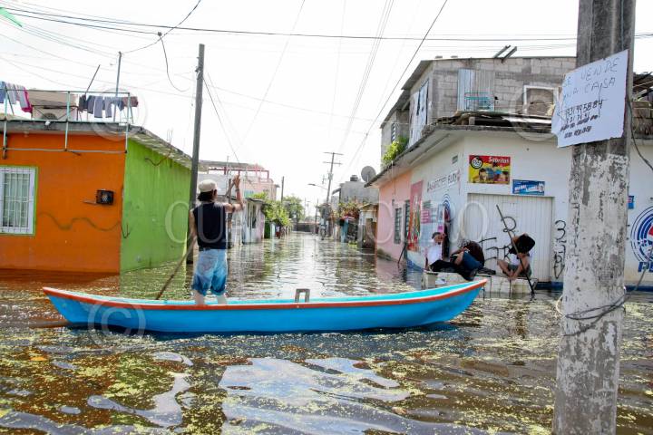 VILLAHERMOSA, TABASCO, 05SEPTIEMBRE2010.- Los niveles del agua en las colonias inundadas rebasan los dos metros de profundidad representando un gran riesgo en donde pueden perder la vida por ahogamiento, los pobladores evacuan a como puedan sus pertenencias como enseres domésticos, colchones y lo que más pueden para perder lo menos posible. FOTO: MARCO POLO GUZMÁN HERNÁNDEZ/CUARTOSCURO.COM