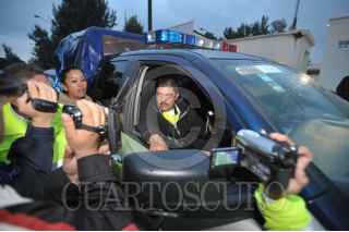 MÉXICO, D.F., 06SEPTIEMBRE2010.- Armando Domínguez Portillo, subdirector de Tránsito y Vialidad y jefe regional de la delegación Gustavo A. Madero de la Secretaría de Seguridad Pública del Distrito Federal (SSPDF), fue puesto a disposición del Ministerio Público en la misma demarcación acusado por sus subalternos de acoso sexual y extorsión. En la imagen a bordo de la camioneta enfrenta a sus acusadores. Este funcionario público, quien es yerno del Jefe del Estado Mayor Policial, Luis Rosales Gamboa, mejor conocido como Apolo; cuenta con más de 70 denuncias por parte de policías de distintos sectores ante la Fiscalía de Servidores públicos de la PGJDF. FOTO: LUZ ACEVEDO/CUARTOSCURO.COM