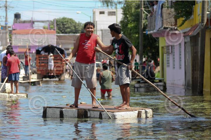 VILLAHERMOSA, TABASCO, 06SEPTIEMBRE2010.- Continúan sin dar tregua las inundaciones en la capital del estado. Varios cientos de tabasqueños intentan ponerse a salvo improvisando balsas hechas de tablas, unicel o tinas de baño. FOTO: MARCO POLO GUZMÁN HERNÁNDEZ/CUARTOSCURO.COM
