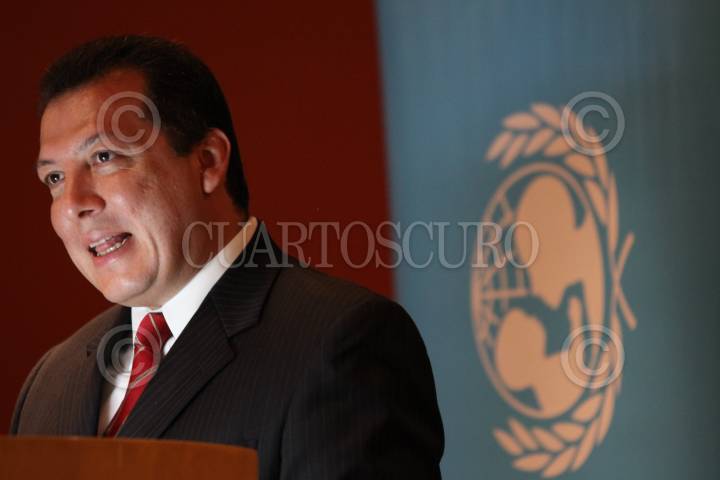 MÉXICO, D.F., 07SEPTIEMBRE2010.- Raúl Plascencia Villanueva. presidente de la Comisión Nacional de Derechos Humanos, es abordado por los medios de comunicación al finalizar la presentación del "informe especial sobre el castigo corporal y derechos humanos de niñas, niños y adolescentes", esto con la presencia de funcionarios de la Corte Interamericana de Derechos Humanos. FOTO: MOISÉS PABLO/CUARTOSCURO.COM