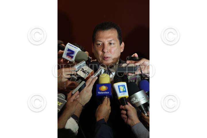MÉXICO, D.F., 07SEPTIEMBRE2010.- Raúl Plascencia Villanueva. presidente de la Comisión Nacional de Derechos Humanos, es abordado por los medios de comunicación al finalizar la presentación del "informe especial sobre el castigo corporal y derechos humanos de niñas, niños y adolescentes", esto con la presencia de funcionarios de la Corte Interamericana de Derechos Humanos. FOTO: MOISÉS PABLO/CUARTOSCURO.COM
