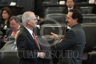MÉXICO, D.F., 07SEPTIEMBRE2010.- Francisco Labastida Ochoa, senador priista y Juan Bueno Torio, senador panista, en la sesión de la Cámara de Senadores. FOTO: MOISÉS PABLO/CUARTOSCURO.COM