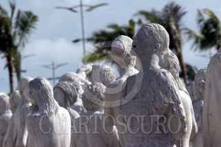 CANCÚN, QUINTANA ROO, 07SEPTIEMBRE2010.- Fueron presentadas las 330 esculturas que serán sumergidas en los próximos días, para formar lo que sera el museo escultórico subacuatico, del artista ingles Jason Taylor. El objetivo es conservar y preservar los arrecifes naturales que al año son visitados por unos 750 mil turistas. De esta manera, a partir de este museo, se desvía a los turistas hacia otro sector, también maravilloso, cerca de los arrecifes de coral y de la vida marina. FOTO: AMARANTA PRIETO/CUARTOSCURO.COM