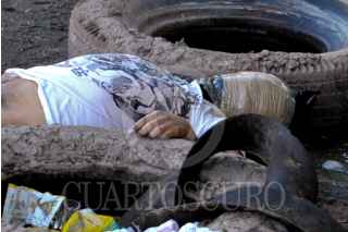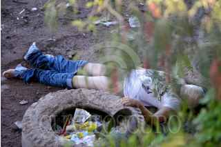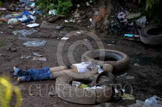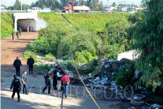 TEXCOCO, ESTADO DE MÉXICO, 08SEPTIEMBRE2010.- Una persona de complexión robusta, fue encontrada sin vida en un terreno valdio con la cabeza encintada en la zona del trébol de incorporación de los Puentes de la Autopista Peñón Texcoco a la carretera Los Reyes Texcoco por lo que personas que transitan por el lugar, dieron parte a las autoridades para que realizaran las investigaciones correspondientes. FOTO: LUIS CARBAYO/CUARTOSCURO.COM