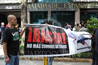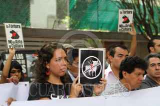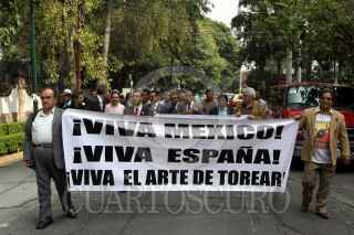 MÉXICO, D.F., 09SEPTIEMBRE2010.- Integrantes de la organización Anima Naturalis protestaron en contra de las corridas de toros y a su vez integrantes del Consejo Nacional Taurino de Aficionados y Peña Taurina de México se manifestaron contra la Ley Antitaurina de Cataluña y a favor de las corridas de toros ; ambas protestas se realizaron a las afueras de la embajada de España. FOTO: RODOLFO ANGULO/CUARTOSCURO.COM