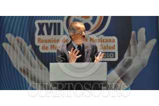 LEON, GUANAJUATO, 10SEPTIEMBRE2010.- Jose Angel Cordova Villalobos, Secretario de Salud, junto a Juan Manuel Oliva Ramírez, gobernador del estado durante la Clausura de la XVIII Reunion Nacional de la Red Mexicana de Municipios Saludables. FOTO: EDUARDO MORALES/CUARTOSCURO.COM