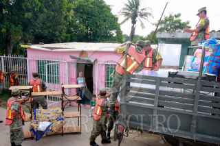 VILLAHERMOSA, TABASCO, 12SEPTIEMBRE2010.- Setenta y tres familias en la ranchería Medellín y Pigua son ayudados por elementos castrense de la 30 Zona Militar a evacuar ante el peligro de inundación por el desborde del río Grijalva. Hoy se cumplen tres semanas que los caudales de los ríos no dan tregua a las inundaciones en esta parte del sureste mexicano. FOTO: MARCO POLO GUZMÁN HERNÁNDEZ/CUARTOSCURO.COM