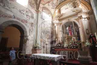 ATOTONILCO, GUANAJUATO, 12SEPTIEMBRE2010.- Santuario de Jesús de Nazaret, donde el Cura Miguel Hidalgo y Costilla tomó el estandarte de la Virgen de Guadalupe la noche del 15 septiembre de 1810; mismo que usó en la arenga en el Templo de Nuestra Señora de los Dolores tras haber sido descubierta la conspiración. El Santuario es una construcción del siglo XVII cuyo diseño estuvo a cargo del padre Luis Felipe Neri de Alfaro. A partir de 2008 fue declarado Patrimonio de la Humanidad por la UNESCO. Este año ha concluido su total restauración de los frescos, el pórtico y altar mayor así como la sacristía en donde se exhibe una réplica fiel del estandarte usado por los insurgentes en la movimiento de Independencia de México en 1810. FOTO: DEMIAN CHÁVEZ/CUARTOSCURO.COM