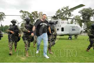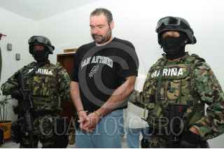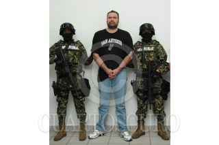MÉXICO, D.F., 13SEPTIEMBRE2010.- Sergio Enrique Villarreal Barragán (a) "El Grande", quien es considerado como el principal operador de la organización criminal de los Beltrán Leyva, durante su traslado a la Ciudad de México el día de ayer por la tarde después de haber sido detenidos en el estado de Puebla. FOTO: ESPECIAL/CUARTOSCURO.COM