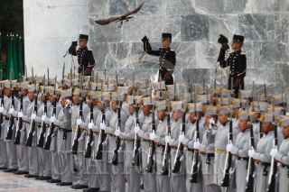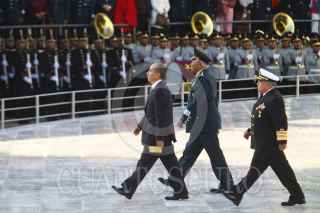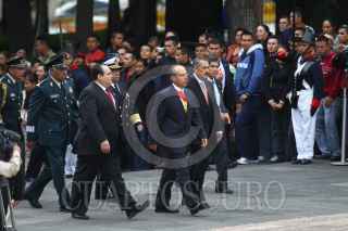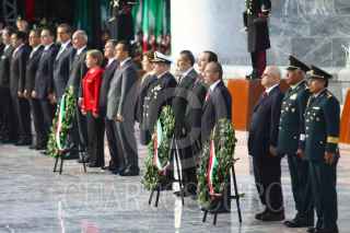 MÉXICO, D.F., 13SEPTIEMBRE2010.- El presidente Felipe Calderón acompañado de Guillermo Galvan, secretario de la Defensa Nacional y de Francisco Saynez, secretario de Marina duranrte la Ceremonia Conmemorativa al CLXIII Aniversario de la Gesta Heroica de los Niños Héroes de Chapultepec que se realizo en el Altar a la Patria. FOTO: RODOLFO ANGULO/CUARTOSCURO.COM