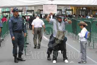 MÉXICO, D.F., 15SEPTIEMBRE2010.- Elementos de la Secretaria de Seguridad Publica del Distrito Federal, Policía Federal, Estado Mayor presidencial, revisan mediante filtros de seguridad a los asistentes que asistirán a los festejos de del Bicentenario de la Independencia de México. FOTO: SAÚL LÓPEZ/CUARTOSCURO.COM