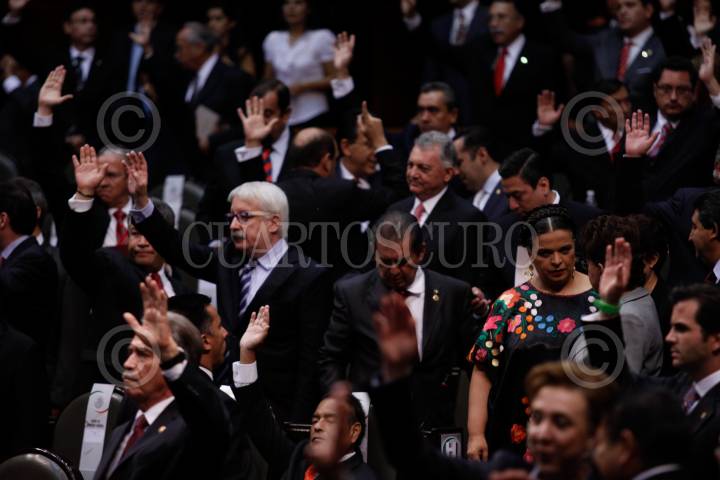 MÉXICO, D.F., 15SEPTIEMBRE2010.- Alejandro Encinas, coordinador de la bancada del PRD en la Cámara de Diputados; Beatriz Paredes Rangel, presidentea nacional del PRI; Manlio Fabio Beltrones, presidente de la mesa directiva del Senado de la República; Josefina Vázquez Mota, coordinadora de la bancada del PAN en la Cámara de DIputados inauguraron el mural "Congresos Constituyentes" en la Cámara de Diputados. FOTO: IVÁN STEPHENS/CUARTOSCURO.COM