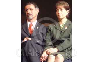 México, D.F. 31 Marzo 2003.- Carlos Abascal Carranza, secretario del Trabajo acompañado de su esposa Rosa Martha Olascuaga participaron en el III Congreso Mundial de Familias que se llevo a cabo en el Centro Banamex. FOTO: Eunice Adorno/CUARTOSCURO.COM