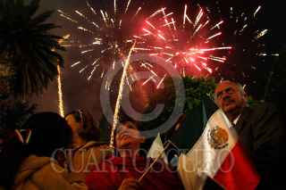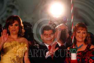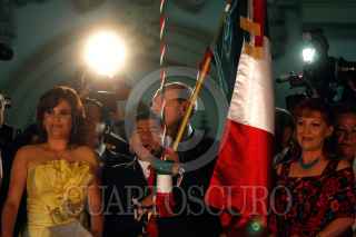PUEBLA, PUEBLA, 15SEPTIEMBRE2010.- El gobernador de Puebla, Mario Marín Torres, en compañía de la alcaldesa capitalina, Blanca Alcalá Ruiz, dieron el grito del Bicentenario de la Independencia en el palacio municipal de Puebla. Ante cientos de personas que se dieron cita en la plancha del zócalo, los funcionarios estatal y municipal, se despidieron de los ciudadanos en su último festejo patrio. FOTO: FRANCISCO GUASCO/CUARTOSCURO.COM