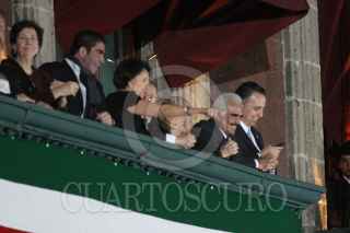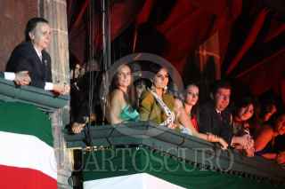 MÉXICO, D.F., 15SEPTIEMBRE2010.- Jimena Navarrete, Miss Universo 2010, fue una de las invitadas a contemplar los festejos del Bicentenario de la Independencia en los balcones del Palacio Nacional. FOTO: MOISÉS PABLO/CUARTOSCURO.COM