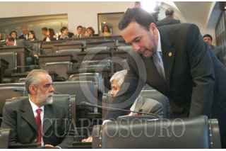 México D.F 01 Abril 2004.- Nezahualcoyol de Vega, (PRI), Emilio Gamboa Patrón,(PAN) y Jesús Ortega,(PRD) durante la sesión ordinaria del Senado. FOTO: Eunice Adorno/CUARTOSCURO.COM