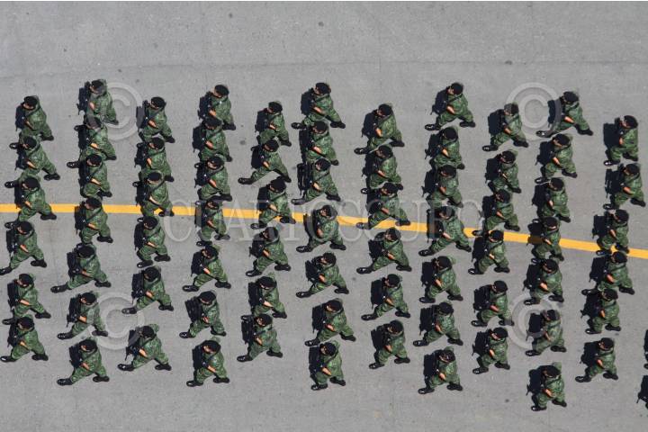 MÉXICO, D.F., 16SEPTIEMBRE2010.- El Desfile Militar Conmemorativo al Bicentenario del Inicio de la Gesta de Independencia de México se realizo del Zócalo de la Ciudad y recorrió Paseo de la Reforma. Desfilaron elementos de las Fuerzas Armadas: Ejercito Mexicano, Marina - Armada de México, aeronaves de la Fuerza Aérea Mexicana y por primera vez elementos de la Secretaría de Seguridad Publica federal; a su vez desfilaron delegaciones militares de Alemania, Argentina, Brasil, Canadá, Colombia, Chile, China, El Salvador, España, Estados Unidos, Francia, Guatemala, Honduras, Nicaragua, Perú, Rusia y Venezuela. FOTO: IVAN MENDEZ/CUARTOSCURO.COM