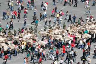 MÉXICO, D.F., 16SEPTIEMBRE2010.- El Desfile Militar Conmemorativo al Bicentenario del Inicio de la Gesta de Independencia de México se realizo del Zócalo de la Ciudad y recorrió Paseo de la Reforma. Desfilaron elementos de las Fuerzas Armadas: Ejercito Mexicano, Marina - Armada de México, aeronaves de la Fuerza Aérea Mexicana y por primera vez elementos de la Secretaría de Seguridad Publica federal; a su vez desfilaron delegaciones militares de Alemania, Argentina, Brasil, Canadá, Colombia, Chile, China, El Salvador, España, Estados Unidos, Francia, Guatemala, Honduras, Nicaragua, Perú, Rusia y Venezuela. FOTO: IVAN MENDEZ/CUARTOSCURO.COM