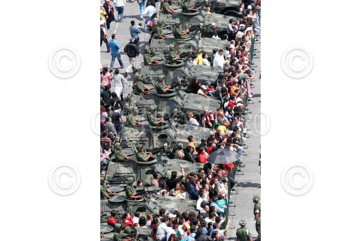 MÉXICO, D.F., 16SEPTIEMBRE2010.- El Desfile Militar Conmemorativo al Bicentenario del Inicio de la Gesta de Independencia de México se realizo del Zócalo de la Ciudad y recorrió Paseo de la Reforma. Desfilaron elementos de las Fuerzas Armadas: Ejercito Mexicano, Marina - Armada de México, aeronaves de la Fuerza Aérea Mexicana y por primera vez elementos de la Secretaría de Seguridad Publica federal; a su vez desfilaron delegaciones militares de Alemania, Argentina, Brasil, Canadá, Colombia, Chile, China, El Salvador, España, Estados Unidos, Francia, Guatemala, Honduras, Nicaragua, Perú, Rusia y Venezuela. FOTO: IVAN MENDEZ/CUARTOSCURO.COM