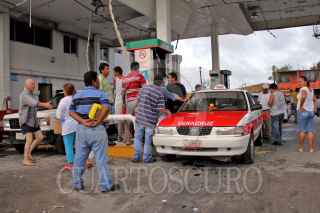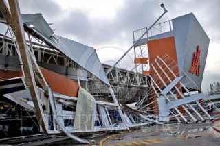 VERACRUZ, VERACRUZ., 17SEPTIEMBRE2010.- Las fuertes rachas del Huracán Karl que azotaron la conurbación derribaron la estructura frontal de un centro comercial al norte del puerto de Veracruz, no se reportaron lesionados, solo algunos clientes que sufrieron crisis nerviosa al momento del desplome. FOTO: FÉLIX MÁRQUEZ/CUARTOSCURO.COM