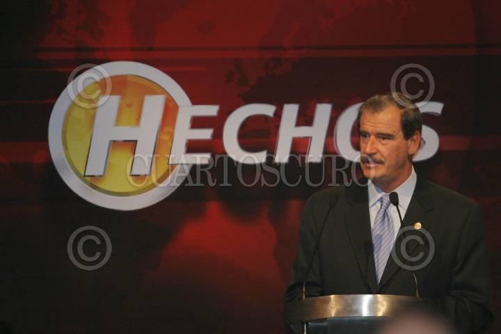 México, D. F. 01 Abril 2004.- Javier Alatorre recibe la Julio Frenk Mora, secretario de Salud, por el décimo aniversario del noticiero Hechos. FOTO: Nelly Salas/CUARTOSCURO.COM