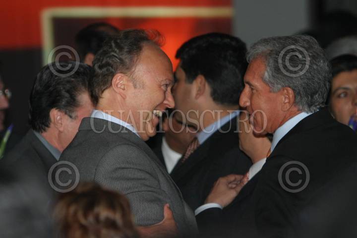 México, D. F. 01 Abril 2004.- Javier Alatorre recibe la Julio Frenk Mora, secretario de Salud, por el décimo aniversario del noticiero Hechos. FOTO: Nelly Salas/CUARTOSCURO.COM