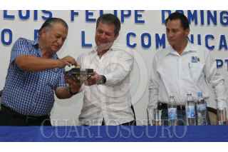 BALANCÁN, TABASCO, 18SEPTIEMBRE2010.- El comunicador de radio Jesús "Chuy" Sivilla Oropeza recibió en manos del edil Miltón Lastra Valencia la Medalla al Merito en la Comunicación Luis Felipe Domínguez en sesión solemne de cabildo. Cientos de habitantes de esta municipalidad, cabildo y el legislador Alberto de la Cruz Pozo atestiguaron dicho acontecimiento. FOTO: MARCO POLO GUZMÁN HERNÁNDEZ/CUARTOSCURO.COM