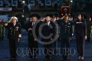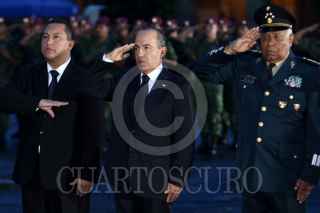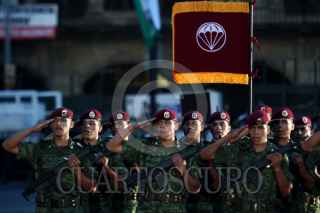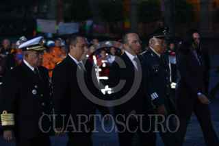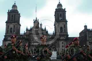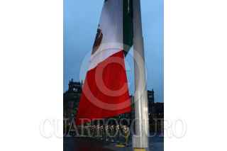 MÉXICO D.F., 19SEPTIEMBRE2010.- Elementos del Ejercito izaron la bandera a media asta durante el acto del izamiento de Bandera por motivo de los sismos de 1985 que se realizo en la explana del Zócalo capitalino. FOTO: RODOLFO ANGULO/CUARTOSCURO.COM