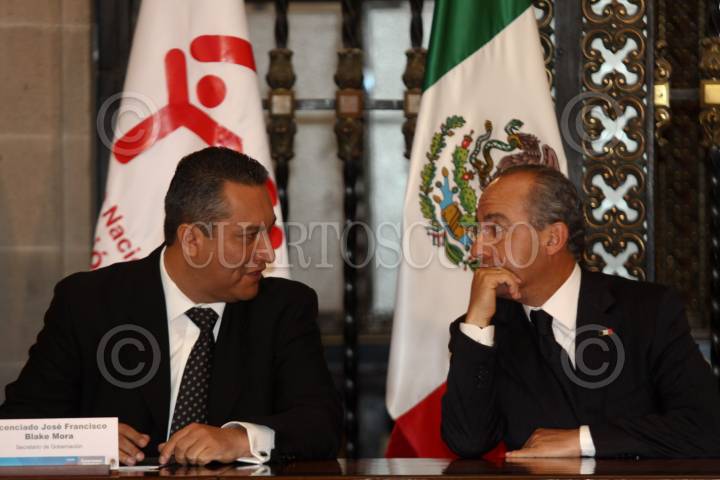 MÉXICO D.F., 19SEPTIEMBRE2010.- El presidente Felipe Calderón y su esposa Margarita Zavala durante la ceremonia conmemorativa del Día Nacional de Protección Civil que se realizo en el Salón de la Tesorería en Palacio Nacional. FOTO: RODOLFO ANGULO/CUARTOSCURO.COM